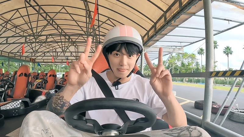 只是明明是兄弟之旅卻粉紅泡泡滿滿,起初只是 Jimin 對 Jung Kook 隨口提起自己喉嚨不舒服,Jimin 立刻化身「寵妻狂魔」,不只把車上冷氣關掉、更開啟座椅加熱功能,雖然悶熱不已卻還是霸氣表示「我生病沒關係,但你不行」「今天睡覺的時候我會緊抱著你,不讓你著涼」,霸總金句連發。