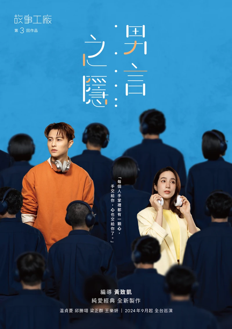 故事工廠《男言之隱》2024純愛加演,卡司集結温貞菱、邱勝翊、梁正群、王樂妍、朱陸豪、劉珊珊、郭耀仁、百白、逸祥、劉桓、鄭鼎諺、柯朋宇、林芷芸、王宏恩(特別演出)。故事描述擁有「聽見男人心聲」超能力的女主角宜蘋,在生活中,成為一位能看透對方底牌的玩家,她的愛情與工作如魚得水。多年後某次意外中,她失去了超能力,卻在此時遇見兩個男人:一位是讓她怦然心動的音樂製作人;一位是苦悶壓抑的作曲才子。宜蘋得重新歸零,學習傾聽,才能找回愛的初心。
