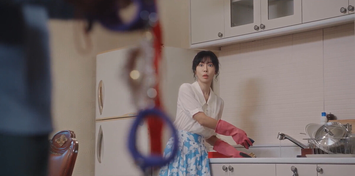 雖然台詞設計蠻有趣「你去包包裡拿東西準備一下,我很懂,我一步步教你玩」,道賢打開工作用包包,拿出皮鞭、眼罩、手銬,嚇得貞淑說拿錯了,是另一個包裝有「大富翁」桌遊!