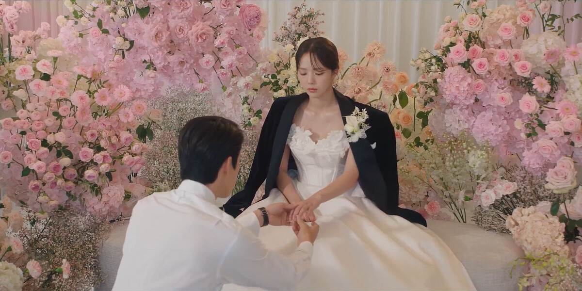 第一集回憶就發現白司彥對洪熙珠呵護備至,假結婚當天訓斥洪熙珠幹嘛穿白紗,洪熙珠氣得要脫衣,白司彥立刻脫下外套替洪熙珠披上,自己說假結婚,竟”單膝跪地”為洪熙珠戴婚戒!?接著警告她婚戒主人以後會回來取。