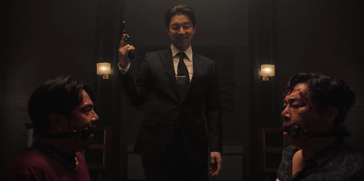 成奇勳因為聯絡不上金代表,回粉紅飯店,發現西裝男早在房間等他,又問「怎麼沒上飛機」,成奇勳要西裝男供出邪惡組織,西裝男說自己只是信差,從搬運屍體工人做起,有一天分配到槍,還殺了自己爸爸,覺得自己很適合這份工作,西裝男講得很驕傲,成奇勳暴怒「你這種走狗不會理解我如何從那裡走出來!」西裝男被激怒問成奇勳敢不敢玩「俄羅斯輪盤」,沒想到成奇勳連三次幸運躲過,西裝男願賭服輸只好扣下扳機...。