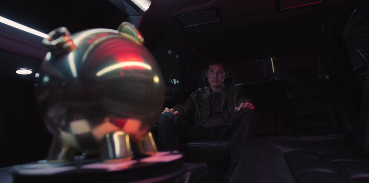 成奇勳準備前往萬聖節派對,以防出事在假牙裡裝GPS追蹤器,讓黃俊昊能找到他。成奇勳被帶上白色加長禮車,黃俊昊與黑道兄弟驅車跟車,但被埋伏在大樓上的狙擊手打爆輪胎,成奇勳幾乎像被綁架駛離了黃俊昊視線。車上金豬喇叭對成奇勳又說「你應該離開過幸福日子」,成奇勳要求立刻停止遊戲,金豬說著「我們只負責辦遊戲,世界不改變,垃圾會不斷出現,我們只是清運垃圾,你來說服賽馬主人啊」。成奇勳突然說「敢不敢帶我回去玩遊戲?」接著車上一陣白煙,成奇勳倒在車裡…。