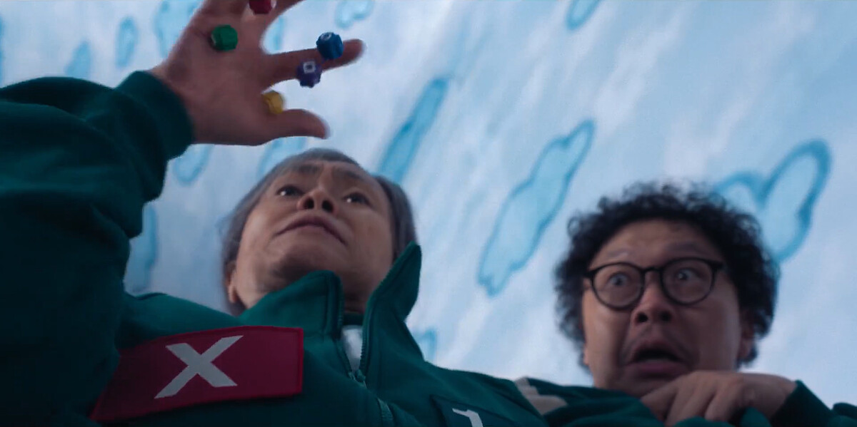 這天,成奇勳來到私家偵探社,關心姜曉母親何時能接來韓國生活,與另一名脫北女孩姜霞(朴圭瑛飾)擦身而過。姜霞拜託偵探社老闆能否繼續找她的女兒,老闆說母親叛逃一歲女娃怎能活?姜霞給了一大包錢,老闆莫可奈何收下。當晚,姜霞窩在車裡看著全家福照片,突然有人敲她車窗,送上魷魚遊戲邀請卡…。