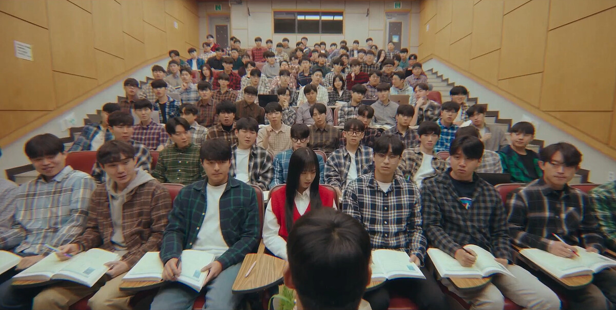 劇中回朔男女主角從大學時代開始交往,Jisoo飾演的英珠是韓國最高學府「韓國大學電機系」工科女神,全班只有她一個女生,被”全系”的男生團團包圍,每天都有不同的學長、學弟跑來班上告白,在一大堆格子男裡面Jisoo顯得特別可愛!