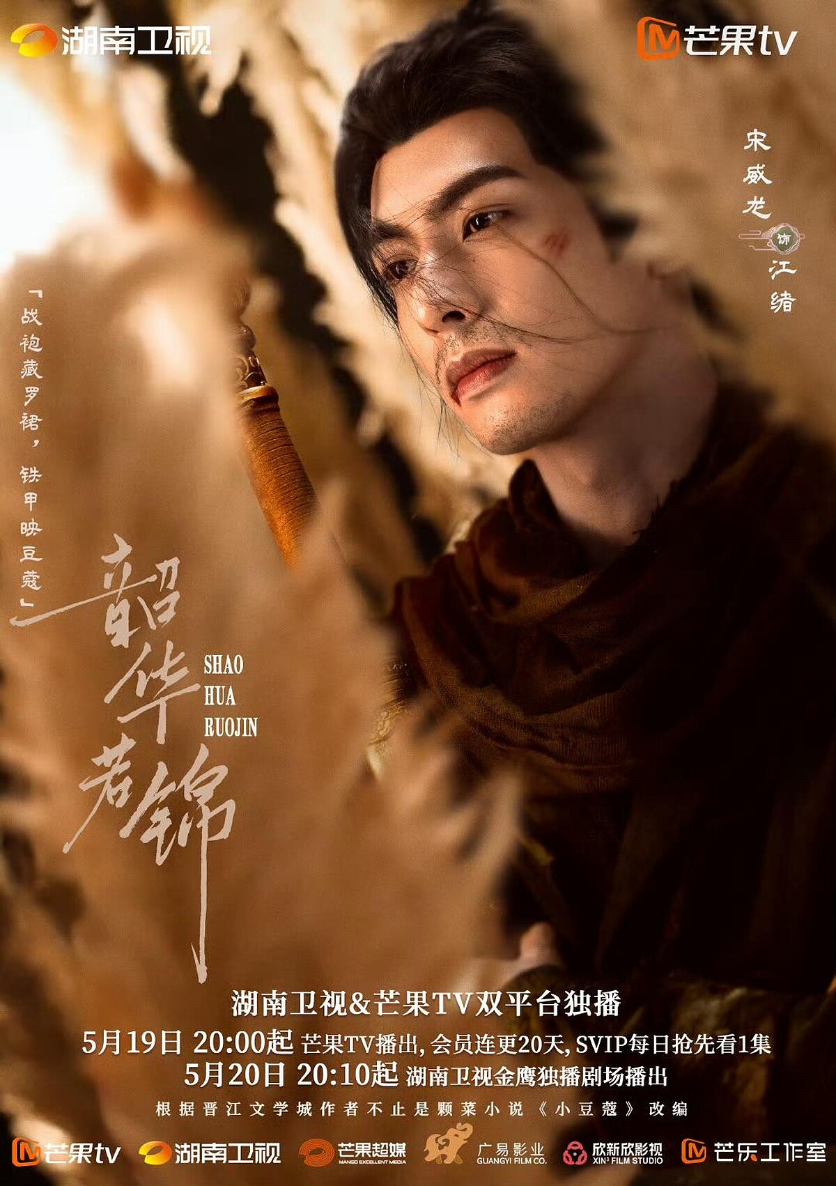 《以家人之名》後宋威龍和經紀公司的爭議,導致他的作品量大幅下降,近年開始少量的復出螢幕,從前就因為濃顏被稱為神顏的他,如今有帶著古裝《韶華若錦》回歸,不論是充滿宿命感的戰損妝,或是穿上朝服的北定王,都完美詮釋何謂盛世美顏與智謀齊飛。播出後粉絲也認為宋威龍從出道作《鳳囚凰》到現在的《韶華若錦》,都深諳權謀之道,這般的角色背景相識,分明就是宋威龍的爺青回,江緒一角自帶新人美。