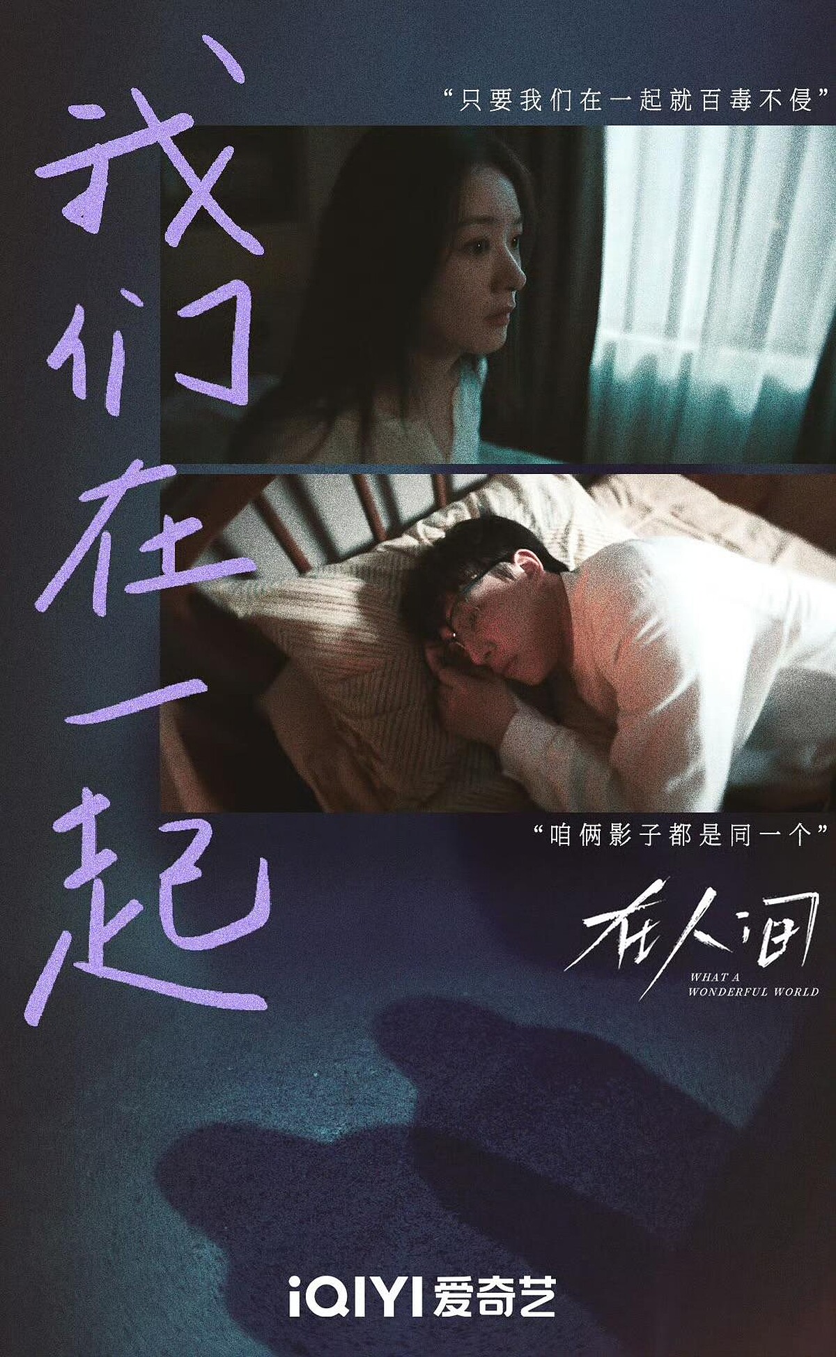 《在人間》徐天和賈小朵擁有同樣的影子、同樣的記憶,而他們也分享著同一具身體,當他們發覺互為同一個人的不同人格時,「世界在崩塌,我們在相愛」仍舊義無反顧地從對方身上擷取僅剩的美好,正如賈小朵劇中台詞「只要我們在一起就沒有關係,我們在一起就百毒不侵」,他們的終點永遠只能有一人抵達,從始自終這就是一場自我和解的旅程,對徐天來說,自我即是歸途。