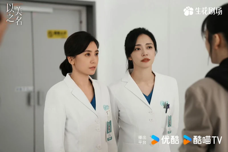 《以美之名》講述曾是大學同學的喬楊(姚晨飾)和周靜雯(賈靜雯飾),因一場誤會產生隔閡,十年後喬楊因緣際會進入周靜雯和老公開的整形醫院工作,如同宿敵的兩人,在工作中一次次產生分歧,又因為對職業理想和信念站在一起,共同面對手術難題。