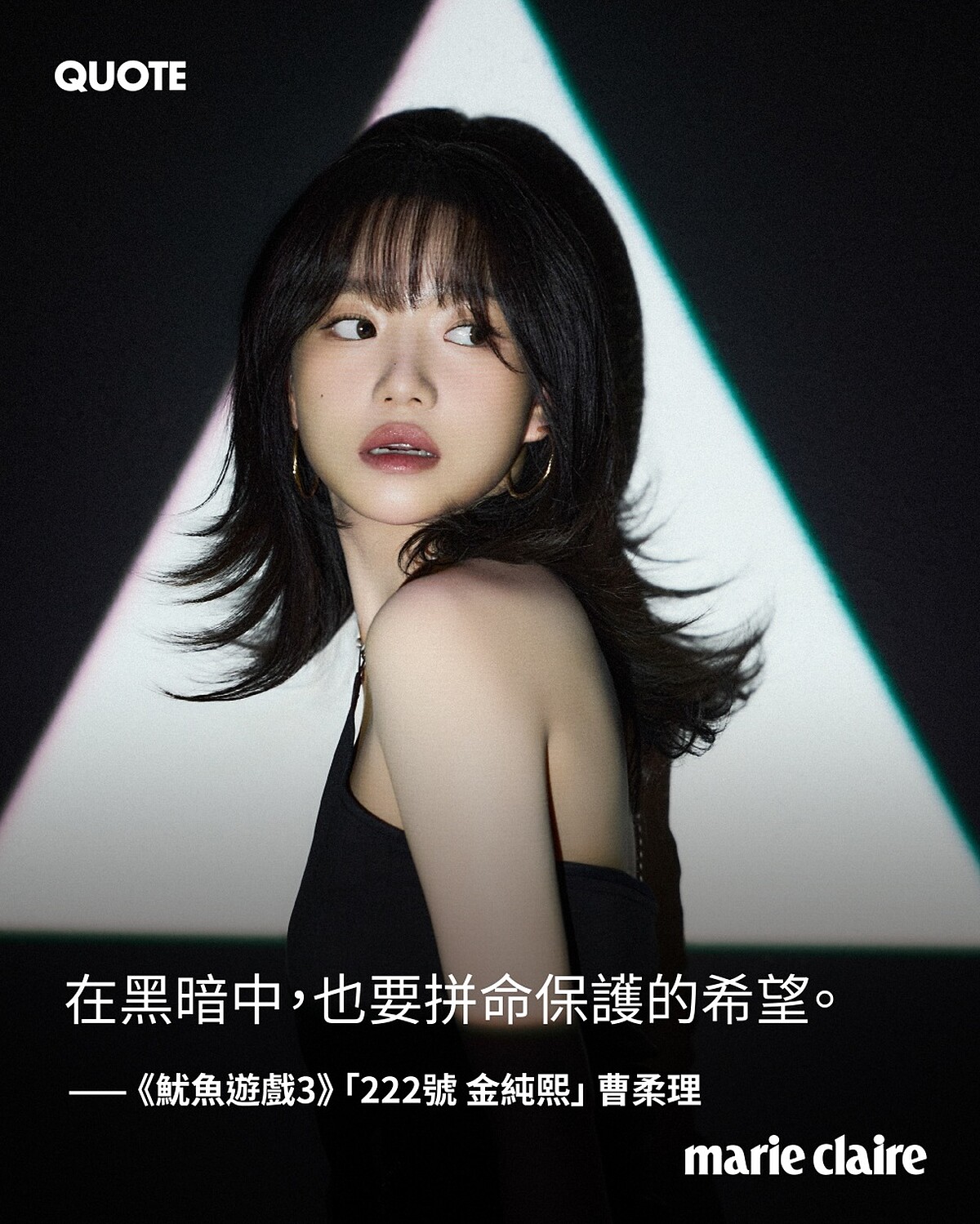 以23歲的年齡飾演帶著身孕進入野蠻人性遊戲牢籠,偶像出身的曹柔理將222號金純熙稚氣未脫,卻得不斷面對生命抉擇以及體力考驗的試煉,試圖一步步在困境中,展現出 Gen Z 世代少見的成熟與穩重,他說:「在遊戲裡甚至廝殺,是一場比戰爭還要泯滅人性的世界,每天都有人為了是否要繼續遊戲爭吵,更有大量的淘汰者死去。我帶著肚子裡孩子來到這裡,象徵著在黑暗中,也要拼命保護的希望,這是非常重要的故事線。」