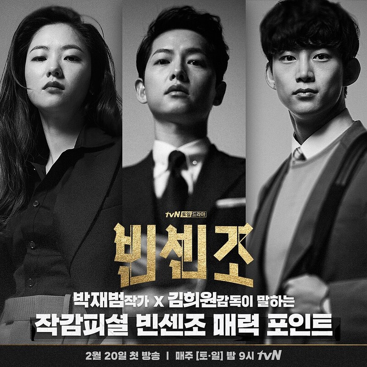 《黑道律師文森佐》由宋仲基飾演義大利律師文森佐‧卡薩諾─被黑手黨收養長大成為「卡薩諾」家族律師,是個以牙還牙的報復主義者。遭組織背叛回到韓國,決心取回過去埋藏在首爾的秘密資產。