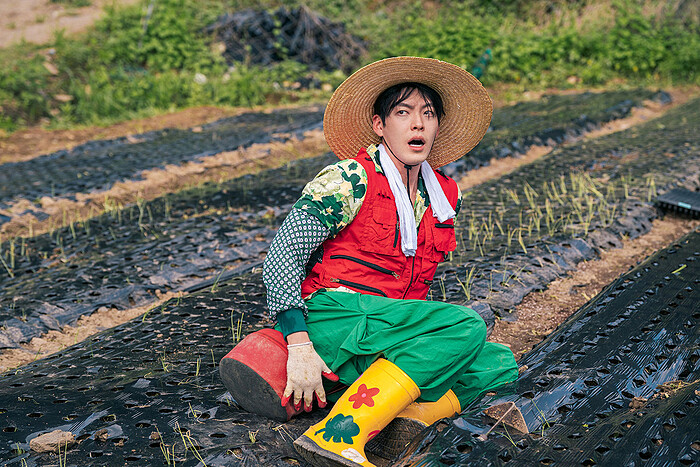 在多數觀眾心裡,金宇彬的銀幕形象是冷酷、霸氣,甚至帶點壞痞氣質的角色。但在《許願吧,精靈》裡,他徹底玩了一次「大反差」,一方面,他是帶著惡名的撒旦精靈,眼神凌厲、語氣壓迫,散發出「人類最好小心」的氣場;另一方面,卻常常被嘉盈的冷漠態度搞得失措,甚至出現蹲在田裡、表情呆萌的畫面,這樣的落差讓角色更立體,也讓觀眾看見金宇彬的新面貌。