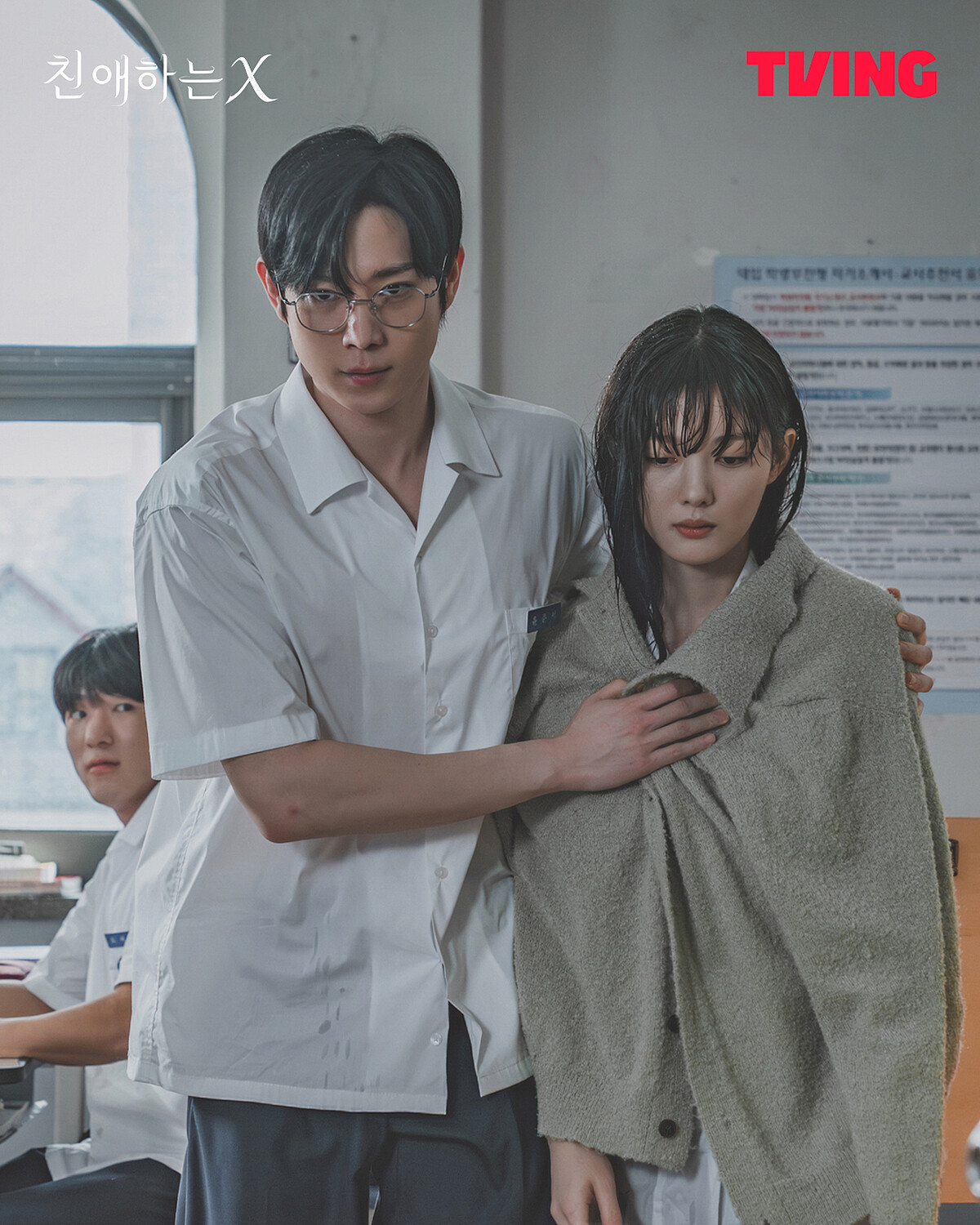 首先,金永大飾演的尹俊瑞,是她生命中最像光的存在。從學生時期到成人世界,他一直嘗試用愛與耐心保護她、拉住她,甚至願意為她承擔後果,金永大的演法不灑糖、不誇張,而是把深情藏在語氣和眼神裡,他知道面前的人危險,卻仍想擋住她可能受的傷,這種「明知道不該愛,卻無法停下」的氛圍,比任何甜言蜜語都更致命。