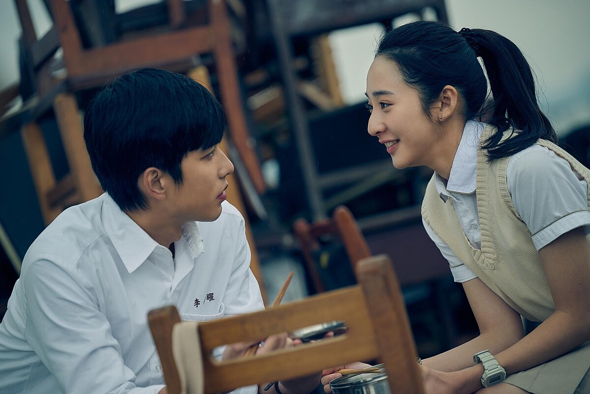 她在學校天台練芭蕾,會把自己的便當塞給他,會幫他擦掉桌上的侮辱字句,會在走廊上假裝什麼都不知道地叫住他。兩個人從尷尬的點頭之交,慢慢變成互相期待見面的存在,還在天台約好未來。那段時間,你真的會以為這只是一部披著暗黑外衣的校園純愛劇。