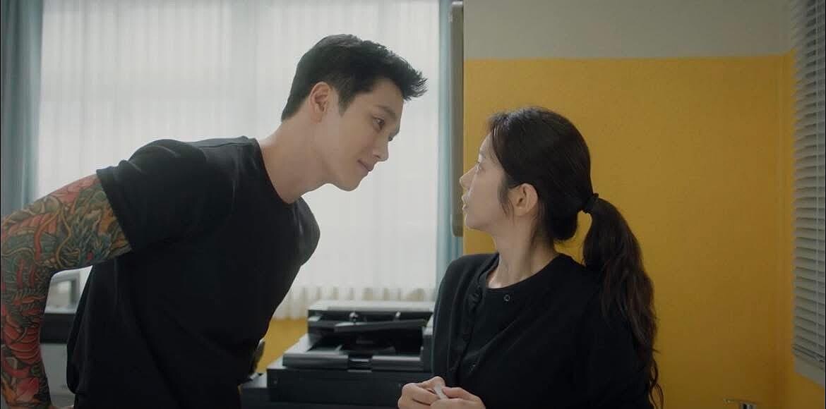尹春回家時,發現大門打不開,因為太過用力,竟然把鑰匙弄斷了,尹春到處逛逛,在不停閃爍的路燈下,看見宣在奎朝自己走來,並隱約看到他拿著類似尖刀的東西,尹春拔腿就往家裡跑,宣在奎也跑,兩人就這樣追逐了起來,尹春拿起手機準備報警時,突然覺得背後被什麼東西猛刺一下,手機掉落,宣在奎撿起手機,尹春求著宣在奎,說自已經跟父母、朋友斷了聯繫,死在這裡,太偏僻了,會沒人來參加葬禮,此時宣在奎拿出鋁箔包的雞肉串,尹春才發現自己誤會了,尹春尷尬的說,大半夜的,你又是滿手的刺青,在接到追著我跑,難免讓人胡思亂想,宣在奎當場把手臂的刺青脫下,這只是加油站送的袖套,得知尹春家裡的門鎖壞了,宣在奎當場翻墻跳進院子,宣在奎離去前,說了一句:你會為今天的錯誤付出代價。