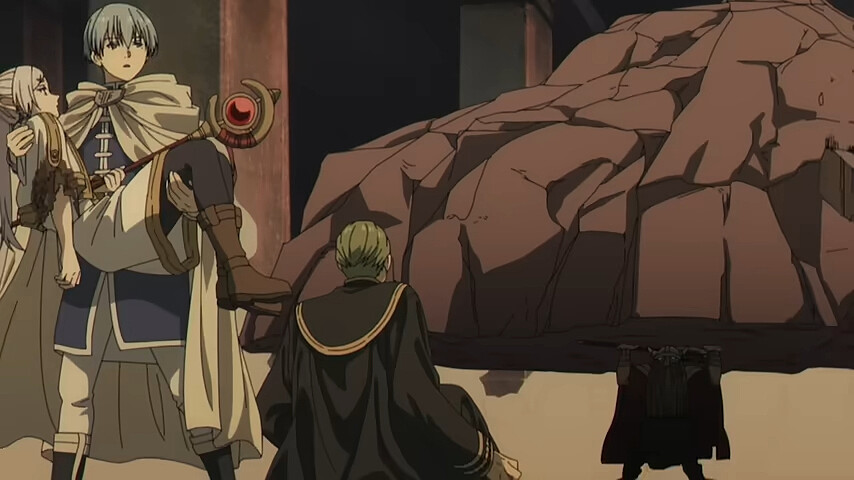 多年後,同樣的事情又發生了,有趣的是這次大逃亡由修塔爾克扛走費倫,複製過去欣梅爾的動作,而芙莉蓮被修塔爾克拎在手裡。