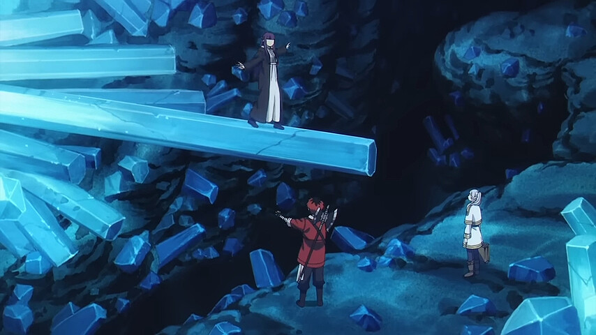在水晶礦坑大逃跑之前,還有一處動畫加戲加糖細節,修塔爾克看周遭水晶石柱,感到好奇拔劍猛砍砍不斷,費倫好奇跑上水晶柱上像走獨木橋,修塔爾克在下面猛盯費倫,深怕她掉下來,做好接住她的樣子,網友原本期待再復刻一次”公主抱”,可惜不如人願,費倫並沒有掉下來,但修塔爾克細心保護的樣子太可愛!