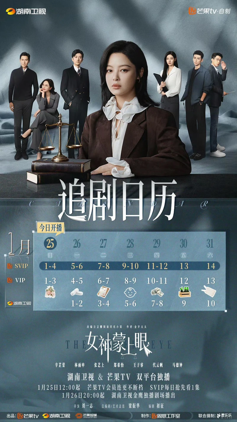 《女神蒙上眼》意思是什麼?其實《女神蒙上眼》劇名取自正義女神泰米斯(Themis)蒙眼執法的經典形象,象徵法律應無視權貴與偏見,唯證據是從,所以宣傳海報主視覺中也有蒙上眼睛的形象。