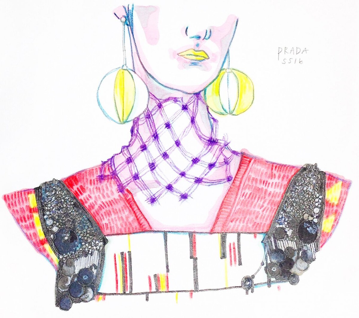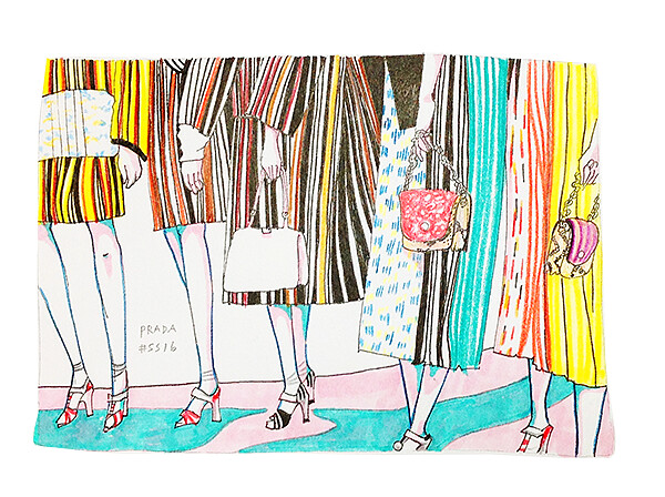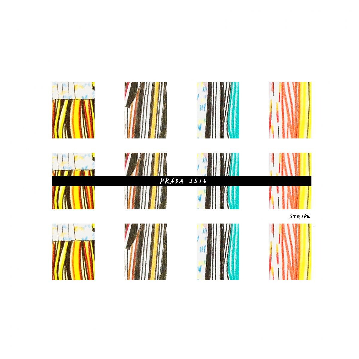 本次Prada設計師Miuccia Prada 在秀場當天未能到場,而是由他的左右手Zambernardi代替發表。全系列皆以「套裝」做基底,對於套裝,「She likes obsessions.」,他提到。大量的亮片裝飾、多種條紋布花以及70年代領圍。