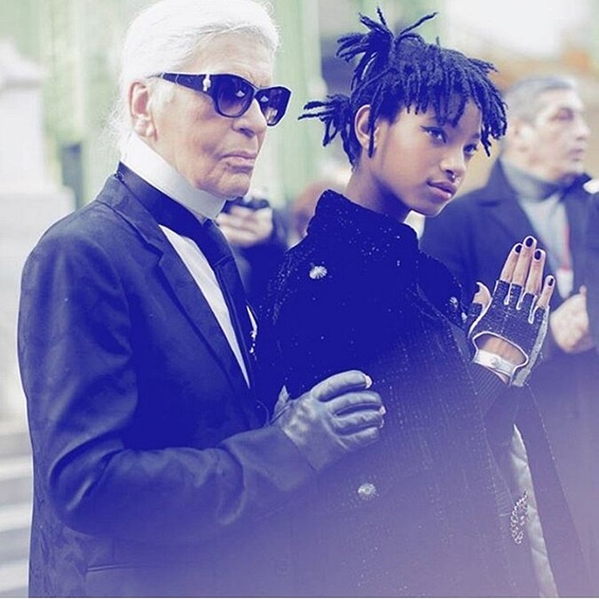 這回香奈兒在巴黎大皇宮發佈的春夏系列時裝,除了造型、配件吸睛,還有一堆國際光芒在秀場上閃爍呢!其中最令人驚豔的就是老佛爺Karl Lagerfeld身邊的那位女孩—Willow Smith,對沒錯,就是超強喜劇電影巨星威爾史密斯的Baby girl!年僅15歲的她早在三年前就和老佛爺相遇了,當時的她為美國雜誌拍攝,沒想到兩年後她被受邀成為香奈兒最新一季形象大使,老爸老哥想必都羨慕不已阿!