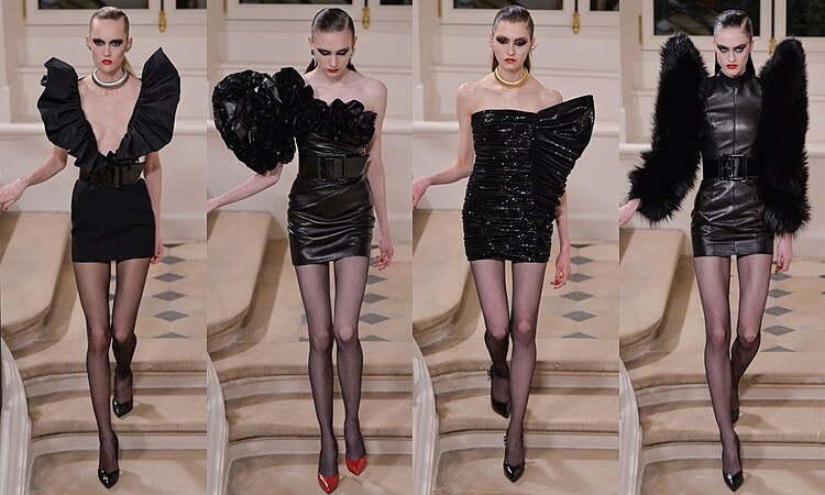 上回在洛杉磯舉行的首部曲是以向聖羅蘭先生致敬的發表,秀場上不只是燈光效果與音樂震撼,更將品牌本身的高級訂製服拓展出高級成衣的領域。三月這場聖羅蘭二部曲選在巴黎的Hotel Senecterre舉行,這場秀被受邀的名人非常少,而且一遲到就無法再進場了,這麼嚴密的遊戲規則,讓更多人好氣又好奇的期待這場神祕的時裝大秀。