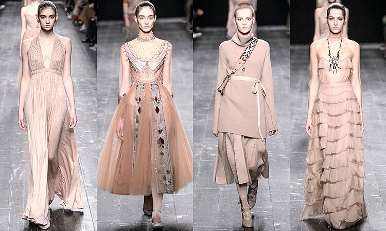 Valentino 2016秋冬系列回望過去不同的時代,將紛亂及不明朗的現今世界作出回應,並一一地去挖掘每一段時尚真諦。由兩位創作總監Maria Grazia Chiuri與Pierpaolo Piccioli嘗試以即興創作的方式來激進文化,把現場直接演出的過程帶入藝術,並營造即刻的互動環境,讓我們沉浸在芭蕾及音樂表演現場的環境,並以芭蕾舞的花卉圖案蓬蓬裙當作上身,個性十足的軍大衣披在連身裙上使得優雅女性更添個性;飄逸紛飛的傘狀裙擺搭上芭蕾舞鞋、順著身體曲線垂墜的流暢線條衣身,還在透薄布料縫上花卉圖案,將華麗與輕盈的個性帶入當中,也展現女性自由奔放的思想主義!