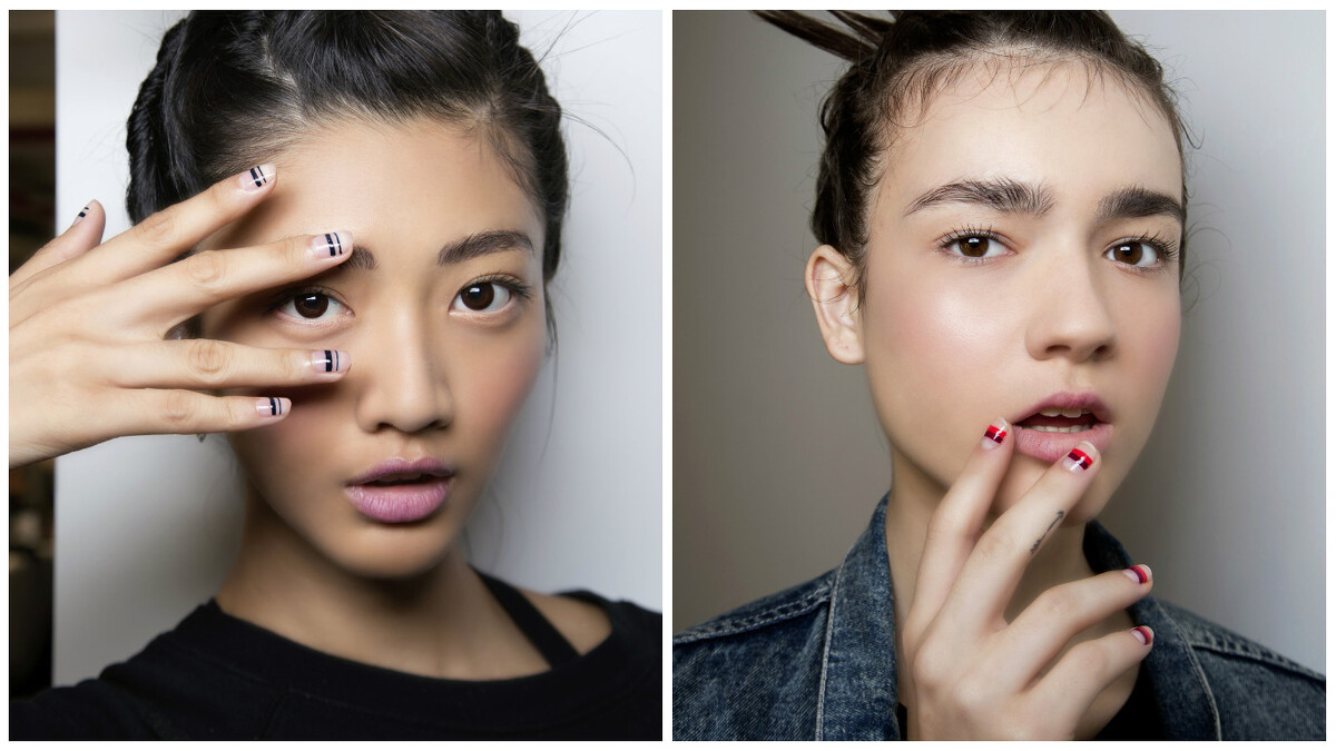 指甲油在本季是小兵立大功的彩妝配件,這一季帶有厚度、反光感十足的凝膠質地指甲油,將成為女孩間最受歡迎的單品,而代表春天的粉色系及帶些許太空感半透明含立體亮片、或是銀河色選都是後台彩妝師的愛。早春秀上彩妝師就流行在 Model 手指上以規則及不規則的幾何圖案、線條、變型法式等,做出各種點綴性的巧思,吸睛度100%。