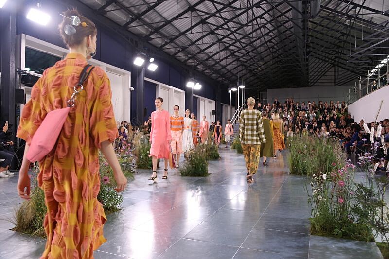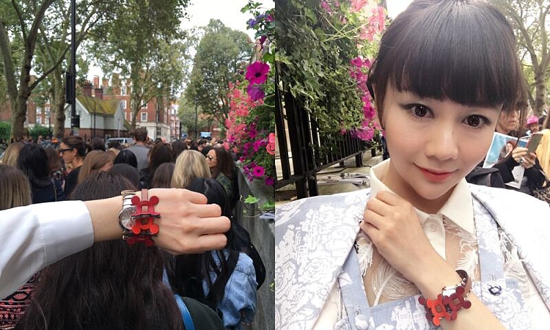 每位來賓都拿到Anya Hindermarch用心的花朵手環,正好與春夏女裝上的幾何花朵做呼應。這場秀大概是看過無論是舞台、音樂、燈光以及服裝最特別的,雖然台灣沒設櫃,不過Club Designer有部分引進,不出國也能滿足小小購物慾。