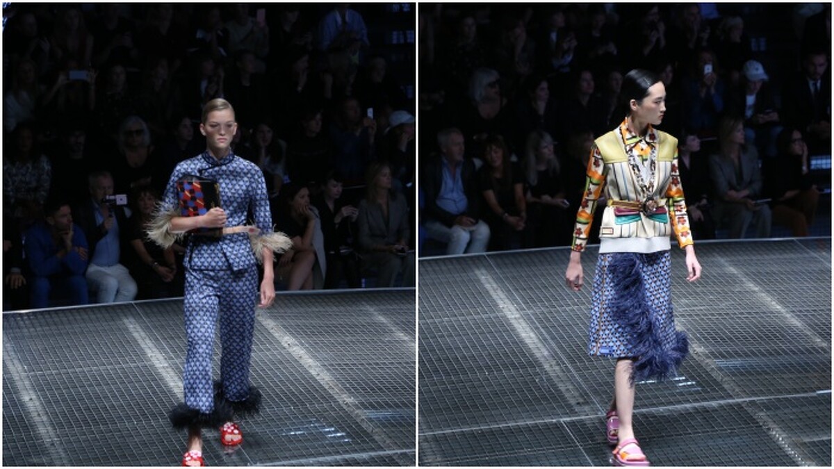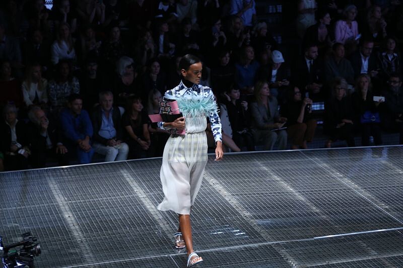 Prada這一季更加「舒適」,也更加貼近日常生活,沒有華而不實的亮麗,隨著每一件羽毛裝飾的單品,秀場上飄逸又多情的實穿浪漫主義,多的是一份掌握現在,活在當下的感受。以襯衫罩上洋裝的新穿法,搭配大量的格紋、印花、幾何,踩著透明拖鞋,隨性又時髦的Prada Girl!