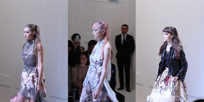 果然Gigi一開場就讓人驚豔了,一頭俏麗的短髮,搭配洋娃娃的妝容,每件服裝單品都像是小時候玩的紙娃娃一樣,在重要的位置多出一塊,就連包包的細節都不放過。利用印刷技術將服裝平面化的趣味玩法,MOSCHINO永遠懂得如何製造話題在這個快速時尚中為自己搶得頭籌。