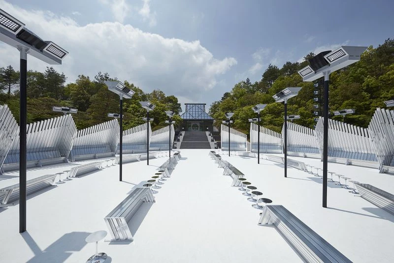 LV已經不只一次選擇貝聿銘的建築作品,作為辦秀的場地。2017年秋冬大秀便是選擇在羅浮宮裡頭舉辦,而此次的美秀博物館是他在1997年的作品,於山中雲霧裡,兼容了古典與未來的風格。