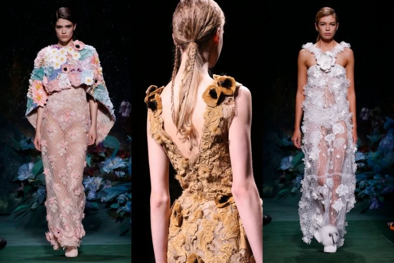 隨著布幕緩緩升起,一個個猶如童話森林裡走出的花朵仙子,那華麗優雅的身影,象徵著春季般的生意盎然到跳脫現世的呼嘯寒冬,為今年的秋冬高訂秀劃下完美句點。