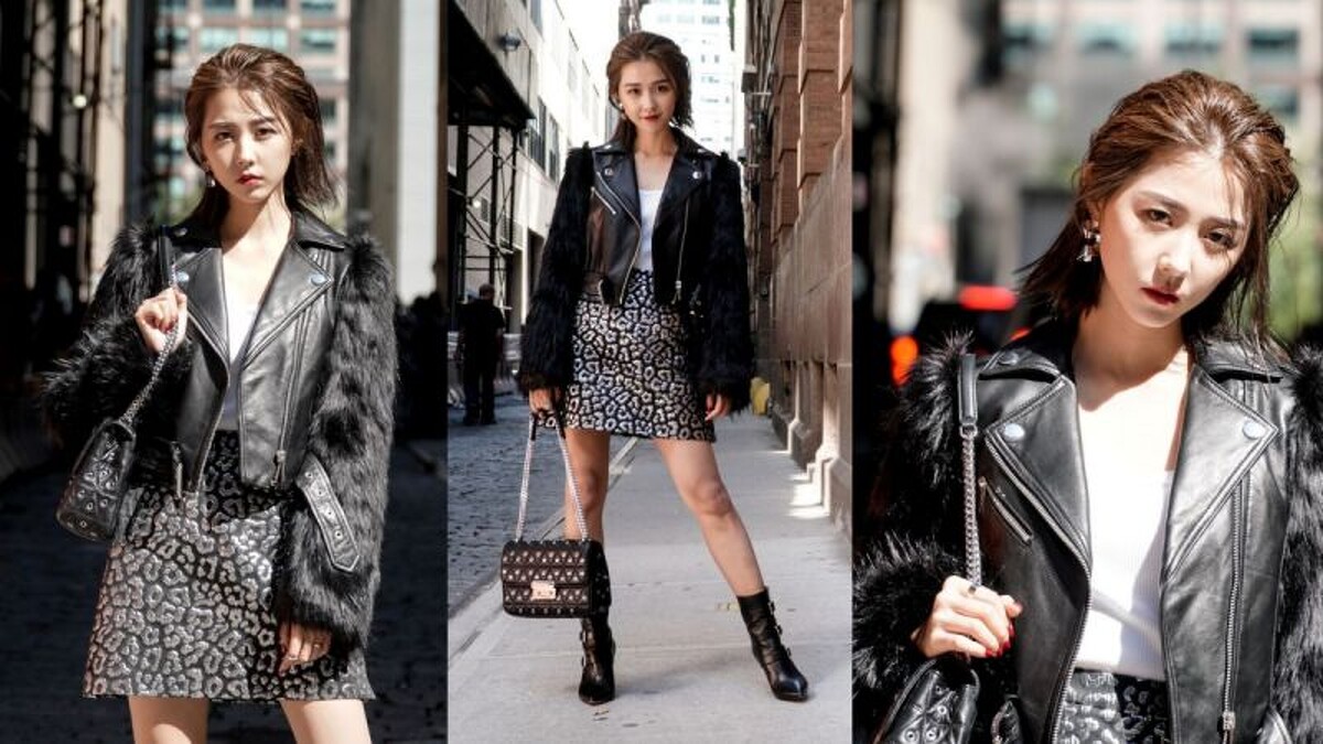 迎接Michael Kors大秀,邵雨薇9/13一早六點就起床梳化,今天身穿白背心+豹紋銀色短裙+毛毛拼接袖皮外套並梳了油頭和深色紅唇,展現個性十足的酷味!