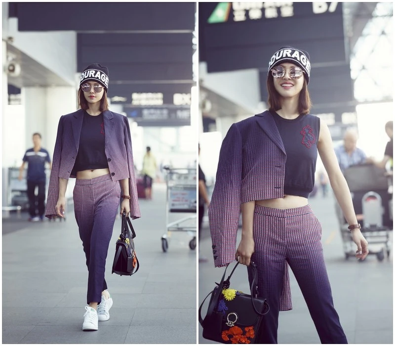 蔡依林作為本次亞太區官方獨家邀請參加 Versace 女裝秀的藝人,她的機場時尚也備受矚目。她以 Versace 秋冬紫色格紋短版外套,搭配同款休閒褲與針織衫,手拎 Versace DV One 花卉提包,並以黑色毛帽點綴,一身行頭率性又時髦,讓人更加期待她將以什麼造型出現在 Versace 2018 春夏女裝秀。