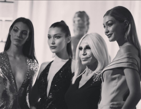 音樂聲中的口白說到:「Gianni, you always recognized how powerful women are.」而這恰恰是這位傳奇大師位當代女性時裝立下的最佳註解,無論是搶眼的印花包覆,或是一身全黑裝束,從剛硬的男裝線條到飄逸的晚裝,都覆蓋不了女性的性感力量。Gigi 和 Bella Hadid、Kendall Jenner、Mariacarla Boscono、Natasha poly、Anja Rubik、Doutzen Kroes…… 當今稱得上是超模的,都在這場緬懷大秀上現身。而在謝幕時,純白布幕緩緩移動,布幕的另一頭是身穿金屬光澤晚禮服的五位傳奇超模,包括Carla Bruni, Cindy Crawford, Claudia Schiffer, Naomi Campbell,無一不是見證這個黃金年代的重要面孔,也讓人憶起攝影大師 Peter Lindbergh 和 Steven Meisel 鏡頭下的一幅幅絕美影像。