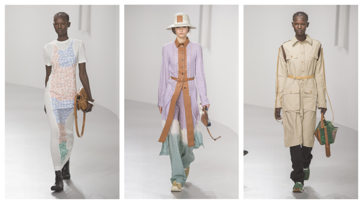 回到服飾上頭,對於材質相當敏銳的Jonathan Anderson,依舊運用大量的異材拼接手法,表現出服裝的微妙層次。在異國風情十足的造型中,棉、麻、針織或皮革,大量有機材質應用,都給人更自在愜意的感受。穿上LOEWE的女人決對是自信滿滿的,因為她會穿上這些看似不修邊幅的服裝,並在鏤空、抽鬚、不對稱與隨興拼貼的手法中,找到最滿意的自己。Jonathan Anderson的厲害之處,是他能夠讓前衛風格不具侵略性,讓藝術精神化作ㄧ種服裝風格。