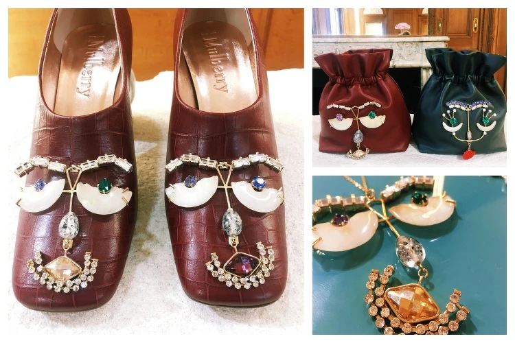 另外一大重點便是重複出現在鞋款、包身以及耳環上的玩偶臉譜,以寶石及水鑽組成的臉譜,走動時隨意擺動的流蘇更是創造出豐富的律動。