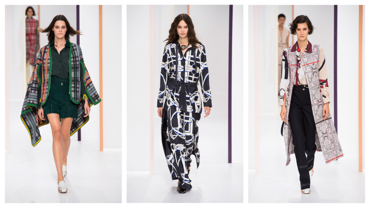 在融合了巴黎特有的浪漫氣息之餘,愛馬仕在2018春夏系列將極簡主義發揮到了極致。秀場一派簡潔、乾淨,服裝的剪裁也俐落有型。從入口的空間佈置便可看出本季的重點不脫「格紋」與「線條」