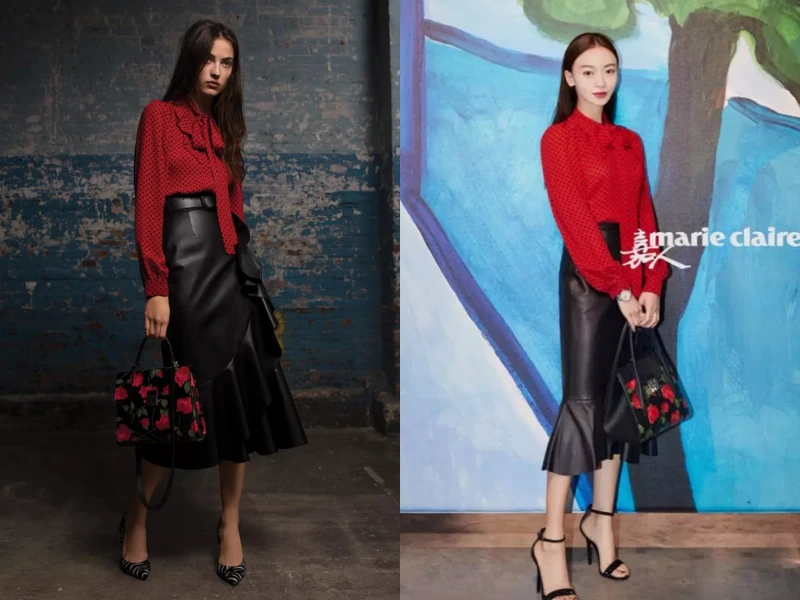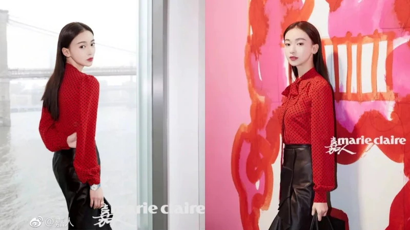 次外,近期因《延禧攻略》一劇爆紅的吳謹言,則是和中國版 Marie Claire 一同前來時裝週行程,也成為兩岸三地媒體最注目的看秀嘉賓。一身帶點復古元素的紅黑造型,出自Michael Kors Collection今年的早秋系列,不只氣勢十足,而且優雅大方,可以說是在現場氣質完勝。