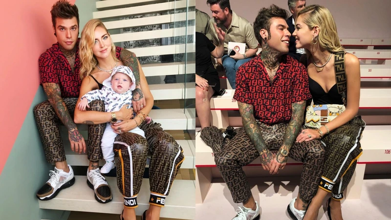 而才剛辦完婚禮的義大利網紅 Chiara Ferragni 則是與老公 Fedez 一同出席,同樣引來不少粉絲到場。