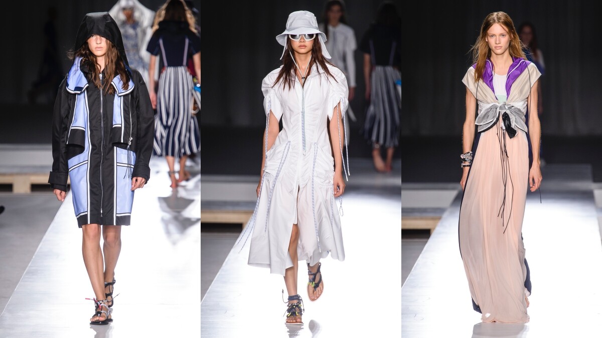刻意加大尺寸的色帥拼接派克大衣,是造型感十足,卻又好穿好搭的亮點單品,讓人等不及想再換季後趕緊入手。而幾件運用抽繩手法製作的洋裝,則是展現出效果極佳的立體感,也是兼具女人味又不需犧牲瀟灑態度的好選擇。