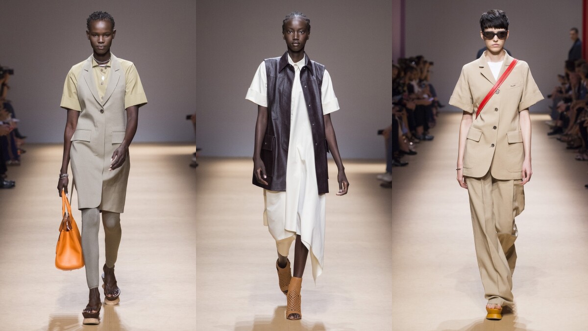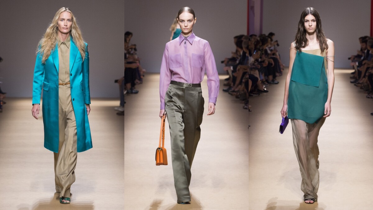 而許多剪裁精美的寬版長褲,則是與男裝作出合諧的呼應,其中幾款以緞面或雪紡材質打造的款式,則是兼具雌雄風彩的出色造型。