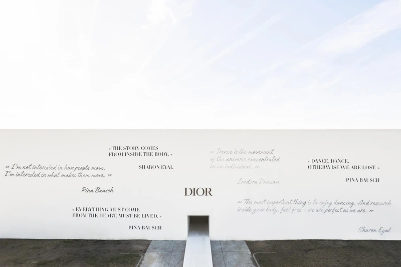 “舞動吧,否則我們終將迷失。”迪奧春夏秀場外,以斗大地草寫字體寫在秀場外,傳奇現代編舞家碧那.鮑許的名言,不難想見這場春夏大秀的靈感來源,將來自肢體的靈動與優雅的女性身段。