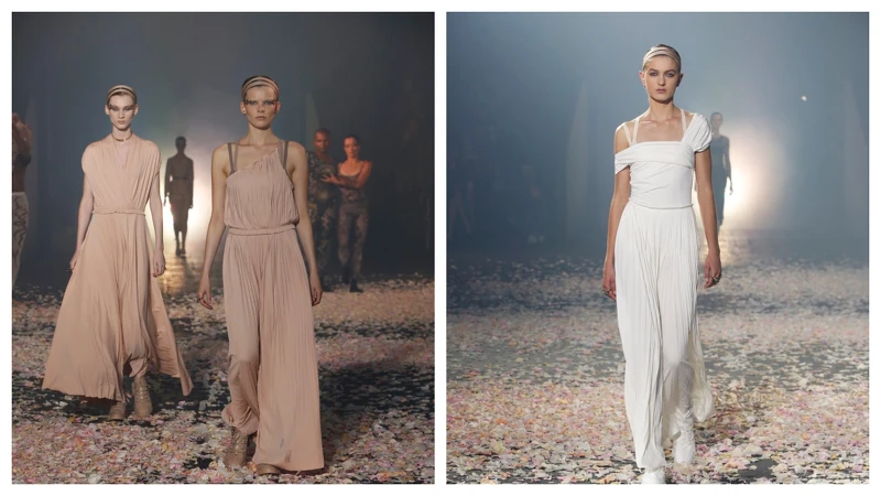本季服飾以舞者舞動時的曼妙姿態為藍本,將柔和的裸膚色與半透膚蕾絲及設計師最擅長的雪紡及刺繡洋裝結合,仙氣十足;