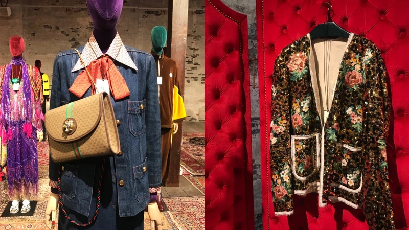 秀場之所以選在此地,原來是為了向義大利傳奇戲劇大師里奧(Leo de Berardinis)與佩拉(Perla Peragallo)致敬,他們著名的「矛盾劇場」向來充滿異議,頹廢、越軌、激情皆是他們的代名詞,對他們而言,戲劇不僅僅是一場表演,而是「集體知識的原始藝術」,在這樣的靈感啟迪下,Alessandro Michele便把這一季採用劇場式的方式呈現,讓model們從劇場走道穿插走出、登上舞台就定位,秀到一半經典女星Jane Birkin更在座位上引吭高歌,聽得現場觀眾如癡如醉。