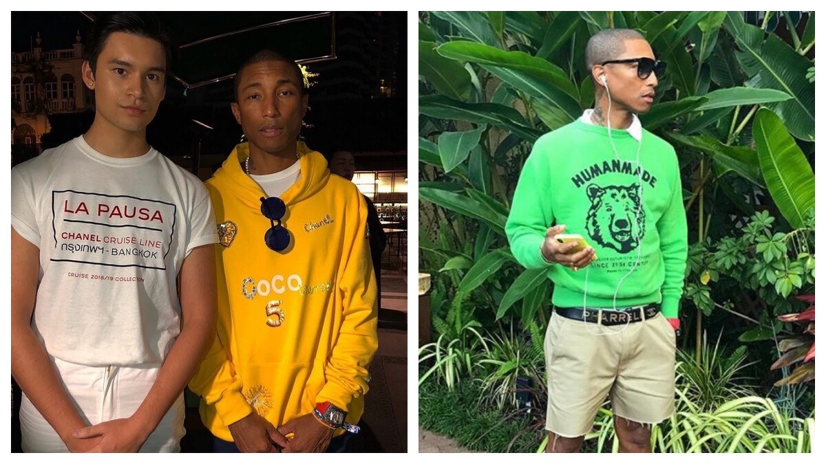 身為品牌好友的他在去年推出一款瞬間秒殺的聯名款運動鞋後,更在今年曼谷度假系列大秀重現活動派對表演時,親自宣布聯名膠囊系列的這則消息,並於當天表演時穿著聯名系列中其中一款黃色鑽飾連帽上衣,及以Pharrell及CC Logo裝飾的皮帶,