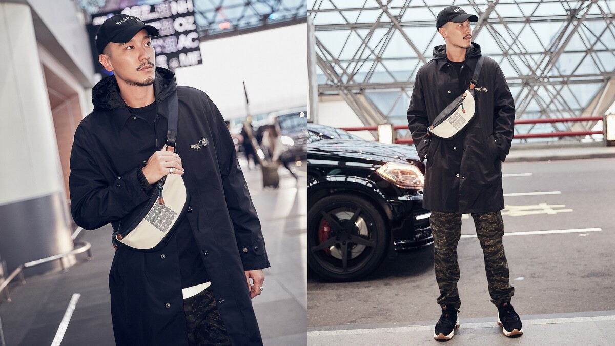 品牌的另一好友王陽明也同樣受邀參加時裝發表秀,留起鬍子的他顯得成熟又有男性魅力~而平常喜愛以美式休閒風格亮相的王陽明,在造型上選擇了可作為風衣抑或大衣的Rexy馬車圖案連帽外套,內裡則是洛杉磯知名夜店Viper Room的經典骰子圖案T-Shirt,此外,為了替衣著的率性感加乘,迷彩印花的長褲則成為了最佳首選,賦予帥氣又帶點瀟灑的自我態度,最後,身為潮流指標的代表,腰包和老爹鞋絕對是不可或缺的重要配件,無疑替整體添入更多的街頭酷帥氣息!