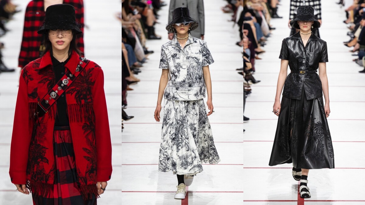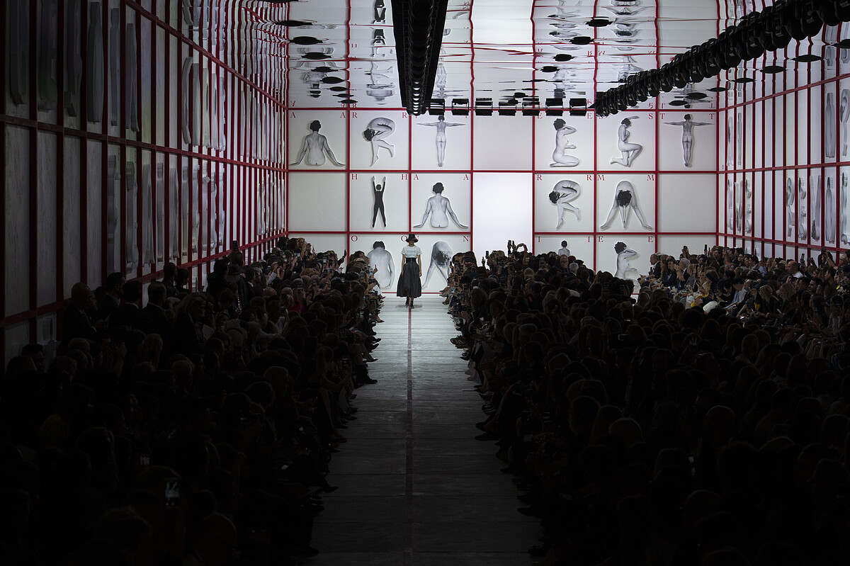 自從 Maria Grazia Chiuri 加入以來,每一季的女裝大秀上,總少不了許多藝術家的角色加入,除了刻意以男性化名,挑戰社會中性別刻板印象的 Tomaso Binga 外,Mario Schifano 的作品也加入了服裝設計當中,以傳統法式印花棉布 Toile de Jouy 手法呈現,讓這源自法式文化的面料展現出新時代的樣貌。