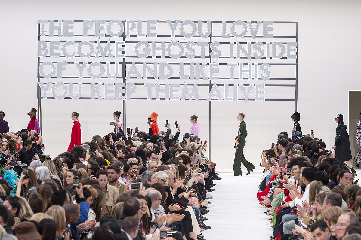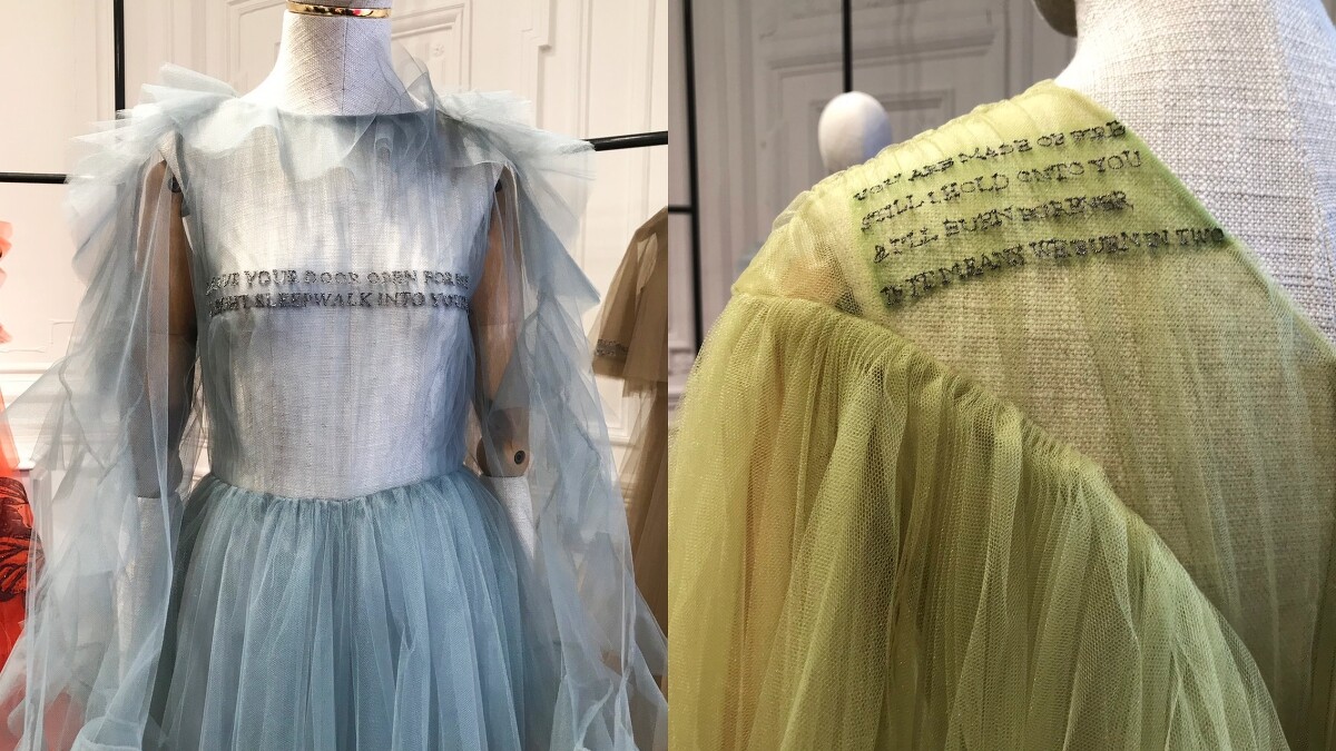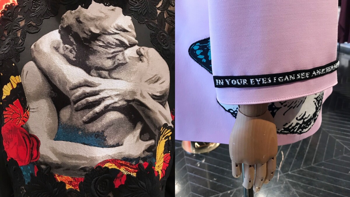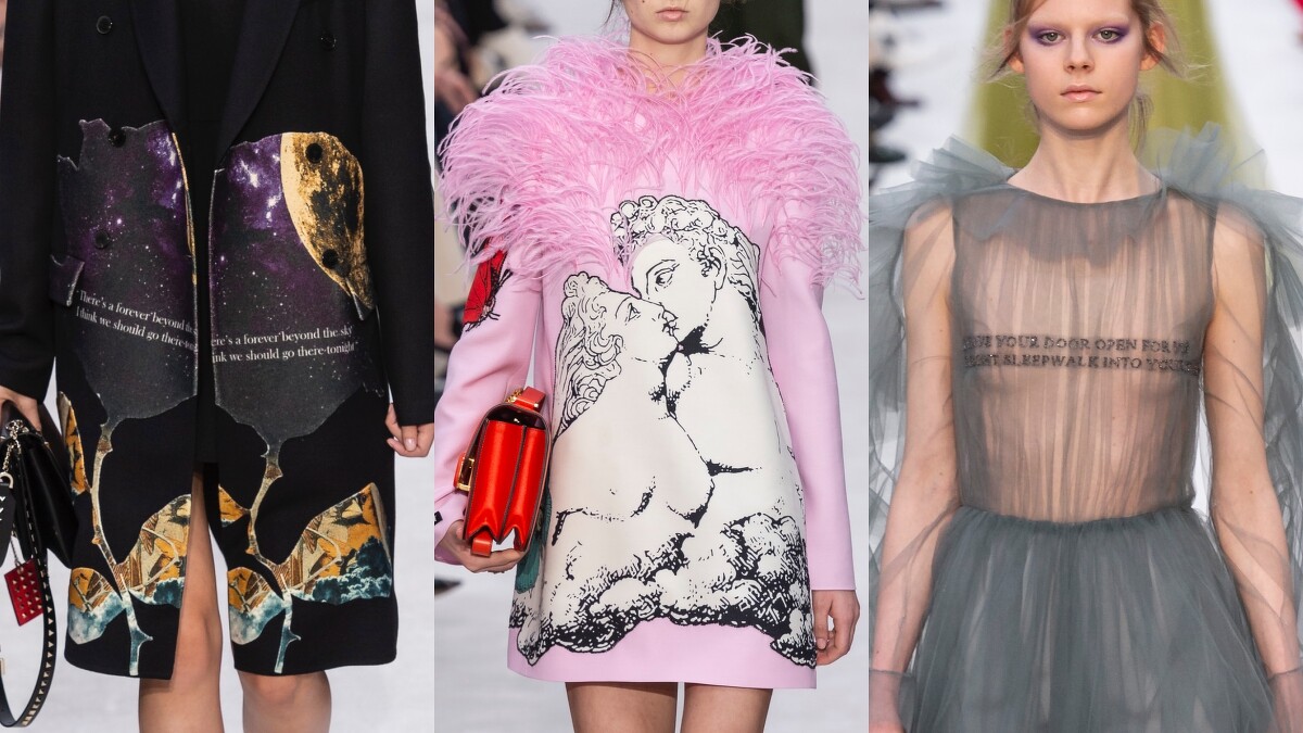 當提琴樂曲緩緩響起時,伴隨的除了有模特兒的自信步伐,朗誦的詞句更使整體氛圍多了文藝的質感。Pierpaolo Piccioli此次不僅找來了四位當代詩人,分別是Greta Bellamacina、Mustafa The Poet、Yrsa Daley-Ward 以及Robert Montgomery,一同在一本名為《Valentino ON LOVE》的刊物中撰寫對愛的信念,更邀請Undercover 的創意總監高橋盾也,以圖像形式詮釋其看法,最後再將這些元素貫穿於系列中。像是優美的詩詞、戀人間的纏綿感情、銀河系拼貼…都替服裝點綴上扣人心弦的情感。