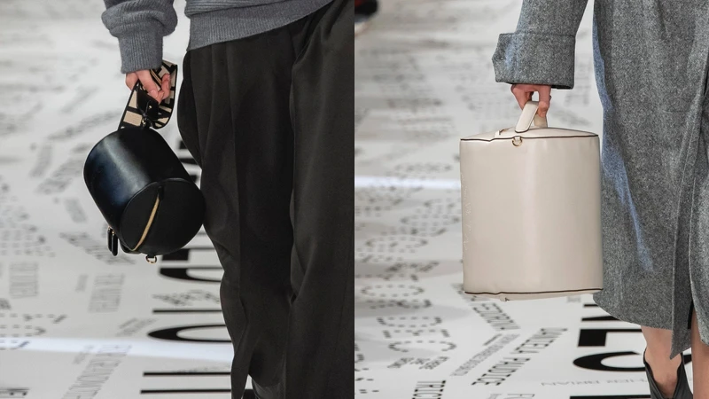 模特兒手上拿的包也同樣成為了場上的話題焦點,圓筒型的皮革包,分別有著大與小型尺寸,簡約外型搭上繡有Stella McCartney字樣的肩背帶,勢必將成為下一季的矚目新包款。