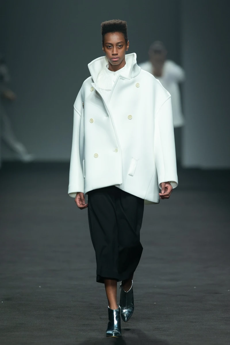 DOUCHANGLEE 2019秋冬系列注重呈現服裝風格與材質的碰撞,將和諧與矛盾的元素進行對話重組,碰撞融合之後詮釋出不受局限的設計。以古典故事對話現代藝術美學重新詮釋白襯衫,細節處精緻的點綴從容大方又俐落清爽;去性別化的闊腿褲在剪裁方面更顯粗獷,用獨特肌理模糊性別界限,更顯簡約自在;異材質拼接外套形成視覺錯落感,率性的大廓形充滿活力趣味。