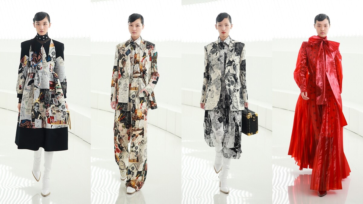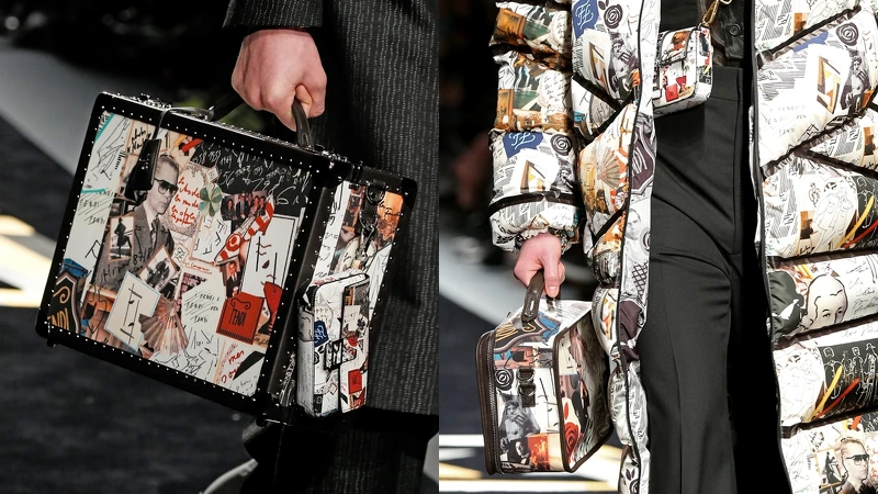 這場上海大秀除了完整重現和卡爾緊密相關的兩個男女裝系列,更特別推出從未曝光過的15套全新設計(男裝5款、女裝10款),塗鴉風格的拼接印花中藏著許多卡爾的肖像,這些來自男裝秀上的印花也是首次運用在女裝上,足見卡爾對FENDI的重要性有多深。